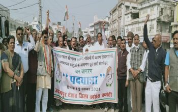 केंद्र सरकार की आर्थिक नीतियों के विरोध में कांग्रेस ने सोमवार को शहर में पदयात्रा निकाली। देशभर में तेजी से बढ़ती महंगाई और आसमान छूती पेट्रोल-डीजल की