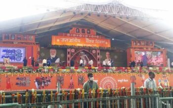प्रधानमंत्री नरेद्र मोदी अमर शहीद बिरसा मुंडा की जयंती पर जंबूरी मैदान में जनजातीय गौरव दिवस समारोह में शामिल होने के लिए भोपाल के जंबूरी मैदान पहुंच गए