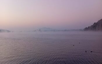 उदयपुर में झील पर उतरे बादल:शीतलहर ने गिराया उदयपुर का पारा, कोहरा इतना कि गाायब हो गई फतहसागर झील