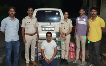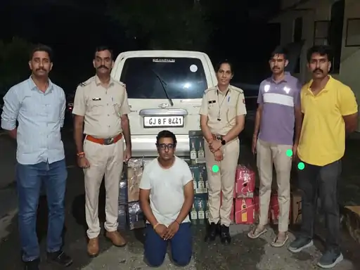 गुजरात सप्लाई से पहले अवैध शराब जब्त की, कार