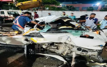 टोल पर खड़ी कार को ट्रेलर ने मारी टक्कर,