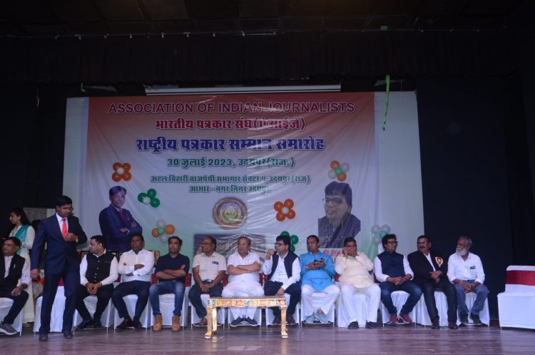 भारतीय पत्रकार संघ राजस्थान के प्रदेश महासचिव डॉ. चेतन ठठेरा ने जानकारी देते हुए बताया कि एसोसिएशन ऑफ इंडियन जर्नलिस्ट के देशभर के पत्रकारों का सम्मेलन और सर्वश्रेष्ठ पत्रकारों का सम्मान समारोह झीलों की नगरी उदयपुर के हिरण मगरी सेक्टर 4 में स्थित अटल सभागार भवन में संपन्न हुआ। इस समारोह में विभिन्न राज्यों के पत्रकारों ने भाग लिया कार्यक्रम में वरिष्ठ पत्रकारों ने पत्रकारिता, समाज और राजनीति पर चर्चा की साथ ही वर्तमान स्थिति में पत्रकारों का सम्मान उनकी सुरक्षा पर भी सवाल उठाया।
